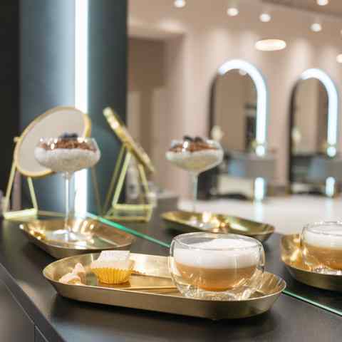 Олицетворением стиля этого места стала классика в современной обработке: натуральные материалы, обилие света, четкие линии. В основе оформления пространства лежит цветовой контраст: белоснежные стены и глянцевые полы гармонируют с солидной черной мебелью и оригинальными элементами декора. Элегантная простота нашла свое отражение в каждой детали интерьера, а правильное зонирование помещения говорит о его функциональности и комфортабельности. Гости салона, окруженные заботой и вниманием, смогут не только получить профессиональные консультации и воспользоваться перечнем услуг, но и приятно провести время за чашечкой ароматного кофе.